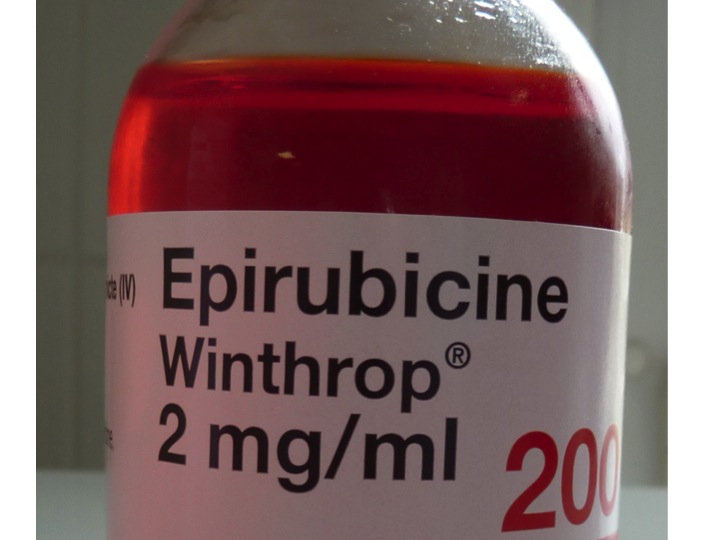 Epirubicin is a member of a group of drugs called anthracycline antibiotics, derived from steptomyces bacteria. These substances also work by binding to DNA and interfering with cell division, again targeting the breast cancer cells which are still dividing, despite having their DNA damaged, because of defective p53.