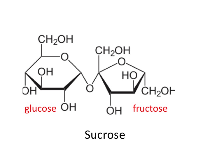Table sugar or sucrose is half fructose. It is a di-saccharide, one molecule of glucose and one of fructose joined together. Fructose is not metabolised in the same way as glucose.