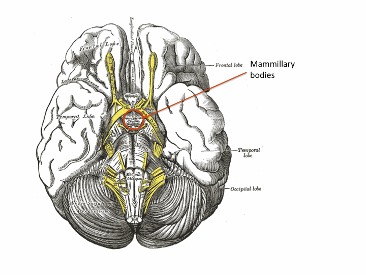 The mammilliary bodies are particularly prone to damage by thiamine deficiency.