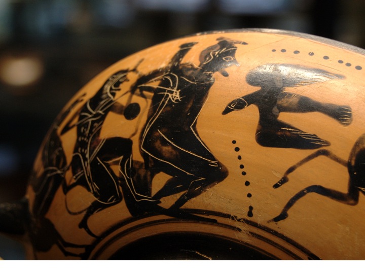 ancient Greek vase showing Prometheus having his liver pecked out by eagle –  wikimedia common user Bibi Saint-pol